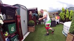 Mark Evans bounced a squash ball on a table tennis paddle handle 209 times while standing on one leg.