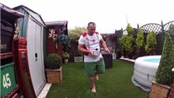 Mark Evans bounced a squash ball on a wine bottle 350 times while standing on one leg.