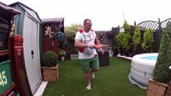 Mark Evans completed 2,369 consecutive table tennis ball bounces on a glass bottle.
