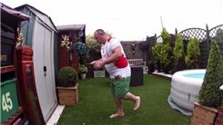 Mark Evans bounced a squash ball on a table tennis paddle handle 100 times while standing on one leg.