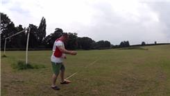 Mark Evans threw a 10-pound note a distance of 42.83 feet (526 inches).