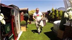Mark Evans bounced a golf ball 110 times alternately on two wine bottles While standing on his right foot.