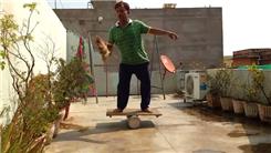 Suresh Gaur bounced a golf ball on alternating sides of a broom 56 times while balancing on a rola bola.