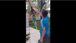 Nathan, Dylan, and Brandon hung 300 objects on a basketball hoop.