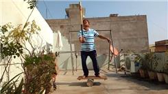 Suresh Gaur balanced a baseball bat on his thumb for one minute, 28.44 seconds while balancing on a rola bola.