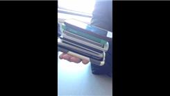 Andy H. stacked a tower of eight cell phones on his hand.