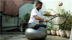 Suresh Gaur bounced a tennis ball on alternating sides of a tennis racquet 138 times while kneeling on an exercise ball.
