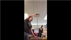 Simon Perkins balanced a 3-foot tall object while holding a Blink-182 CD.