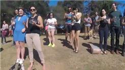 Nate and 35 other people at Lake Merritt in Oakland, California played mason jars as percussion instruments.