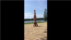 Sarah Ports completed a headstand on a beach lasting eight minutes, 25.00 seconds.