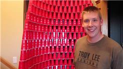 Logan M. built a plastic cup triangle using 550 cups.