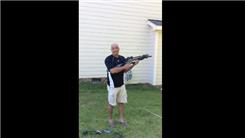Fausto T. shot a balloon with a crossbow from 35 yards away.