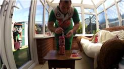 Doug McManaman balanced a glass of wine on his forehead for three minutes, 13.19 seconds.