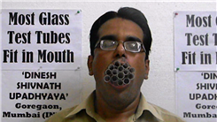 Dinesh Shivnath Upadhyaya placed 14 test tubes in his mouth at once.