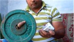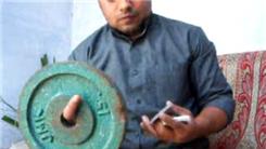 Suresh Gaur stacked 12 dice on a coin held in his hand.