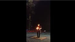 Kristian Kristof performed four pirouettes before catching a flaming cigar boxes using two cigar boxes.