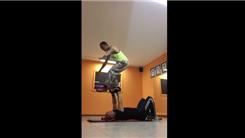 Record Setter performed 12 pistol squats in one minute while balancing on another person's hands.