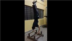 Rahul C. performed a handstand on a mini parallel bar for two minutes, 0.03 second.