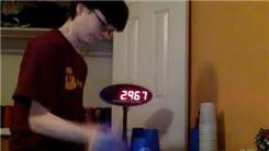 Joshua M. completed a 3–3–3 speed stacking in 3.37 seconds using only one hand.