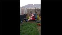 William C. completed 20 stationary rows in one minute while carrying a 100-pound rucksack on his back.