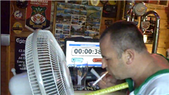 Mark E. lit 18 cigarettes within one foot of an electric fan in one minute, 39.53 seconds. WARNING: This record can be dangerous... (more)