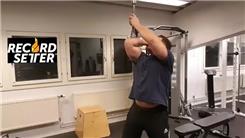 Thommy Ohlund balanced two 2-kilogram dumbbells on his elbow for 21.25 seconds.