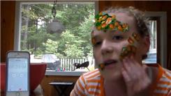 Rachel E. put 100 stickers on her face in two minutes, 58.59 seconds.