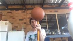 Brendan Kelbie spun a basketball on the tip of a 16-inch tent peg held in his hand for 37.53 seconds.