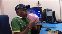 Suresh G. blew up a balloon until it popped in 4.92 seconds.