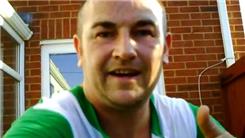 Mark E. used a golf club to knock a golf ball into a pint glass from a distance of 25 feet away.
