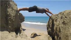 Adel K. performed nine full extension push-ups while supported between two rocks.