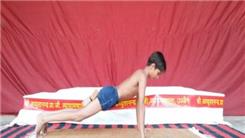 Indrajeet N. performed 23 push-ups while balancing two bricks on his back. He is 10 years old.