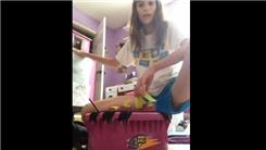 Lucy H. completed 107 one-legged Moon Shoe hops in one minute.