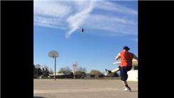 Adam L. punted a basketball into a basketball next from 150 feet away.