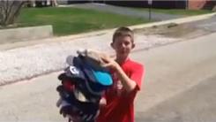 Jake M. held 30 hats in his hand while riding a ripstick.
