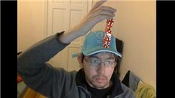 Stephen K. stacked eight dice on the bill of a baseball cap while he was wearing it.
