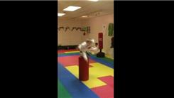 Kevin Taylor's martial arts student jumped over a 30-inch karate kicking pad.