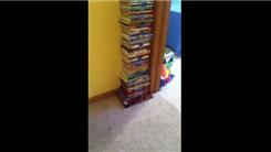 Tim S. stacked a tower of 180 books in a corner.