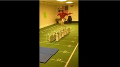 Caleb S. performed 19 consecutive back flips on a trampoline with his hands behind his back.