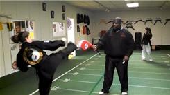 Kevin Taylor's martial arts student, Cara, performed 80 hook kicks with both sides of her body.