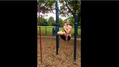 Andre G. performed 14 consecutive one-armed, assisted L-sit chin-ups.