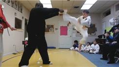 Kevin Taylor's martial arts student broke three boards with jump front kicks.