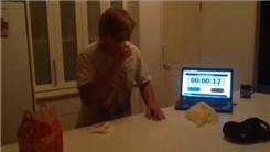 Mathieu B. folded 14 pairs of socks in 40 seconds while drinking a glass of root beer.
