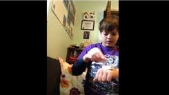 Ethan H. stacked a tower of 21 dominoes on the back of his hand.