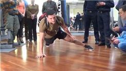 Jeremiah G. performed 130 one-armed push-ups in one minute while carrying a 40-pound weight on his back.