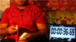 Kamal A. performed a "Roll" card cut in 1.44 seconds while spinning a toothbrush on a pen.