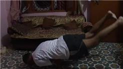 Suresh G. walked 100 centimeters on his hands while holding a peacock pose.