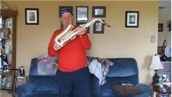 Doug McManaman balanced a saxophone on his forehead for one minute, 33.30 seconds while sitting.