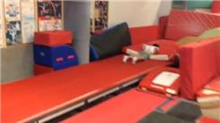 Jade's friend completed a front flip 203 inches (16 feet, 11 inches) in length.