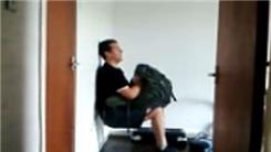 Mark E. used a golf club to chip a golf ball through a doorway from a distance of 32 feet away.